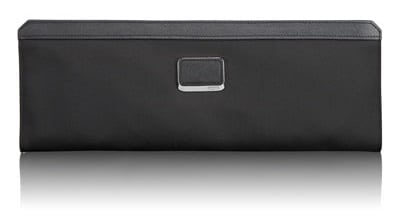 The tie case is designed to protect and organize ties during travel. The Tumi Tie Case holds up to eight ties and includes an interior pocket. Dimensions are 15.75″x 1″x 5.75″. For a more economical tie case, the Round Leather Tie Case case holds three ties. Dimensions are 4″x 5.5″.
